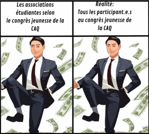 Le 7 juin dernier se déroulait le Congrès de la Jeunesse Caquiste. Armé de son slogan: « ça va brasser », le congrès nous a servi des panels et des discussions sur les réalités que vivent certains jeunes. Au cours de l’événement, un sujet nous a particulièrement titillés. En effet, la CRCAQ (Commission Relève de la Coalition avenir Québec) avait décidé de parler des fameuses et terribles associations étudiantes. C’est pourquoi l’Écorché∙e a décidé de s’infiltrer et de vous rapporter les opinions farfelues, dérisoires et hypocrites de la jeunesse du parti le plus patriarcal du Québec. Nous nous engageons donc à déconstruire toutes les fake news, les propos haineux et les biais cognitifs que les panélistes veulent vous faire croire. Nous voulons rappeler que l’enfer… pardon… la CAQ est pavé de bonnes intentions.